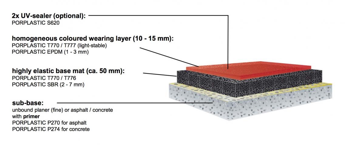认证/系统亮点 临界落下高度1.7m,系统结构符合DIN EN1177标准 根据DIN EN 1177:2008测试证书,没有间隙或绊倒 系统应用 游乐场,校园游乐区,幼儿园或学校的走道,露天浴池的幼儿区,混凝土绿体涂层 要了解更多有关运动地板的信息