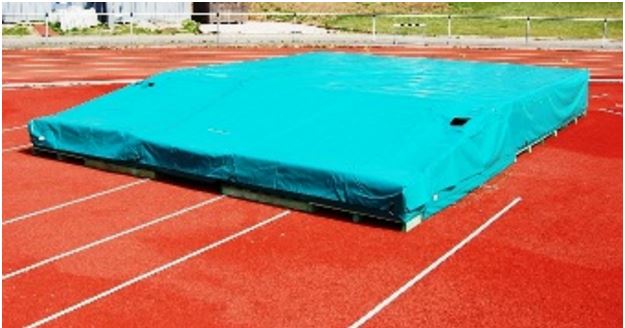 Rain cover for pole vault landing. 8.00 x 6.00 m x 0.90/0.40 m